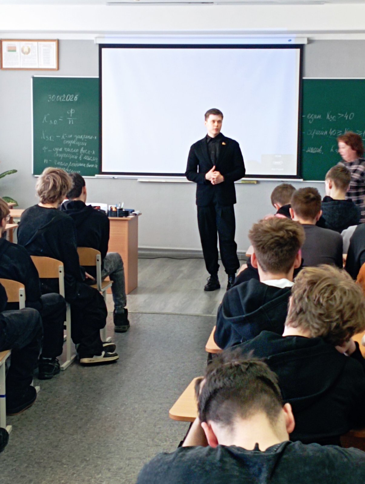 29.01.2026 г. в Барановичском государственном колледже машиностроения в рамках проекта "Школа активного гражданина" состоялась содержательная встреча, посвященная важнейшей теме: "Быть достойным гражданином Республики Беларусь – значит быть готовым в любую минуту встать на защиту Родины". Мероприятие вызвало живой интерес у учащихся, продемонстрировав их осознанную гражданскую позицию и готовность к выполнению своего долга перед Отечеством.