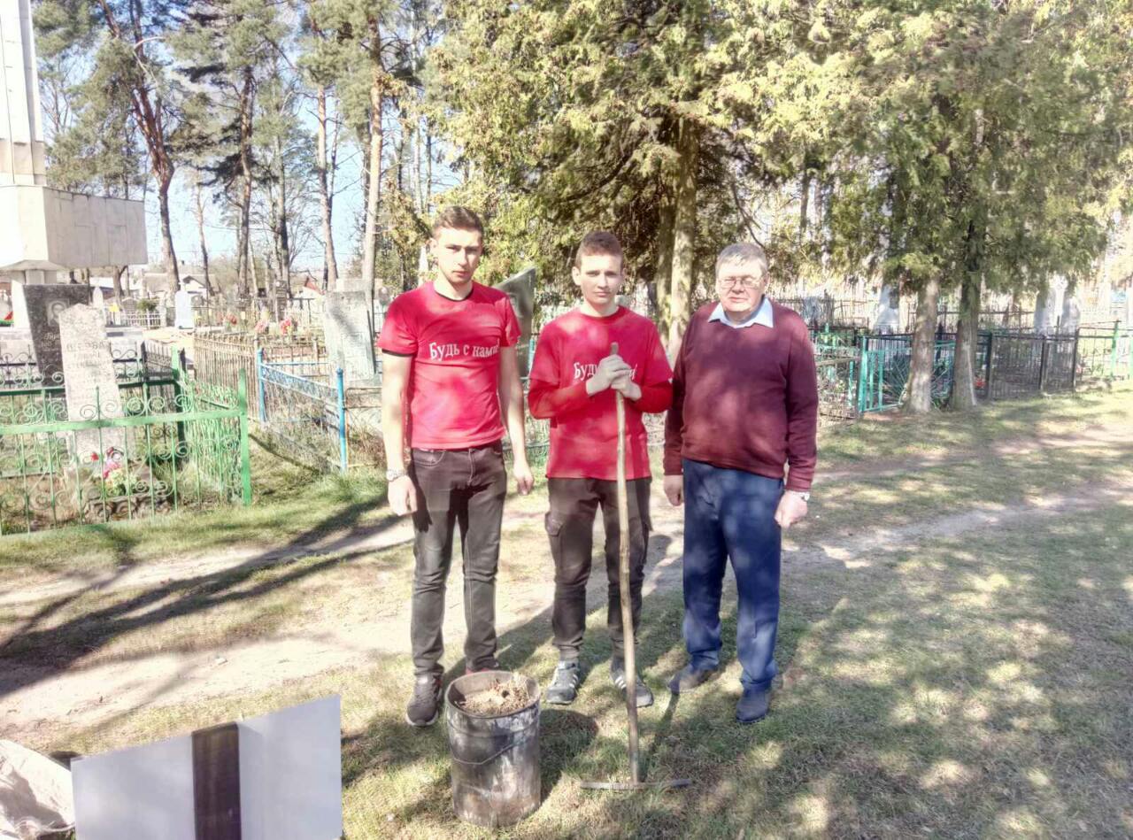руководителем объединения по интересам «Поиск» М.А.Иванковичем 29 апреля убрали и благоустроили могилы подпольщиков, казненных в