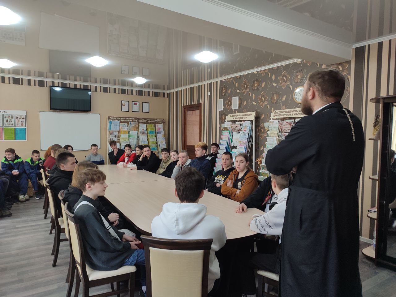 3 марта, в рамках декады профилактики вредных зависимостей, в колледже прошла встреча учащихся 1 и 2 курсов с настоятелем Храма св. Александра Невского иереем Николаем Пашкевичем. В ходе диалога участники мероприятия обсудили вопросы семейного благополучия, духовно-нравственного воспитания, противостояние пьянству и наркомании.