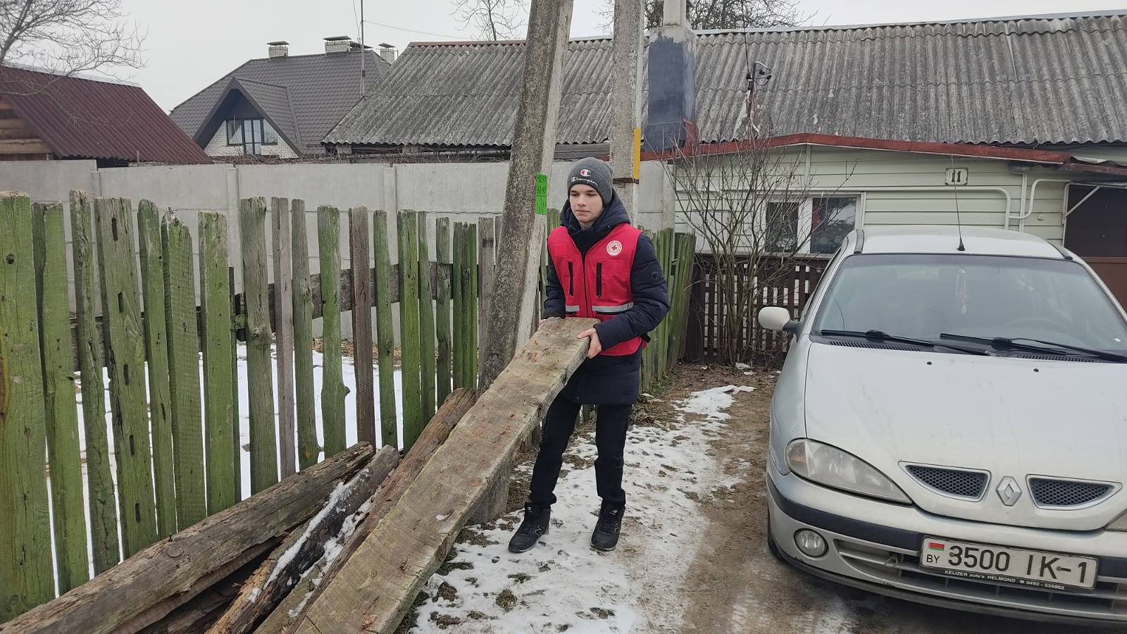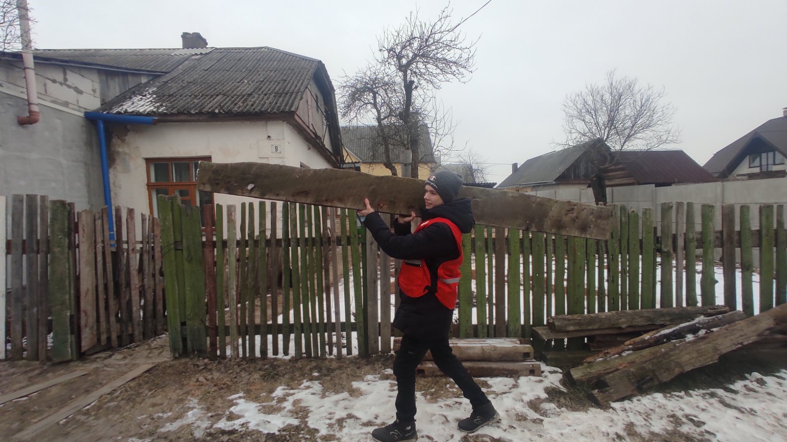 10 февраля наши ребята - волонтёры Красного Креста оказали помощь пожилой женщине - инвалиду первой группы Бертош В.В. в переносе досок и брёвен.