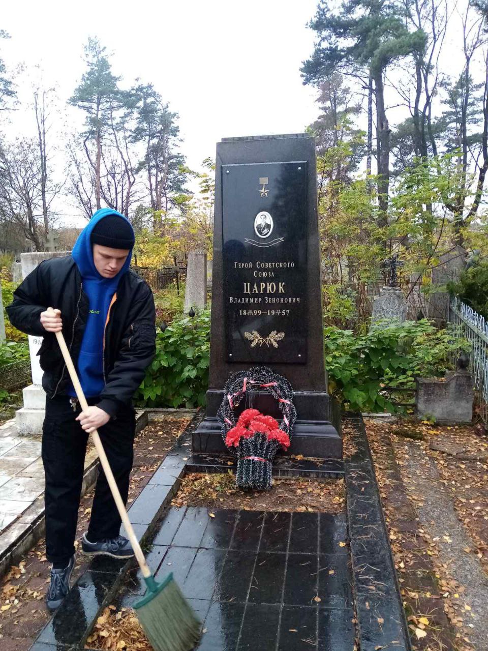 Сегодня наши учащиеся вместе с руководителем по военно-патриотическому воспитанию Гричаниновым О.В. проводили работу по благоустройству братской могилы на городском кладбище по ул. Загородняя.