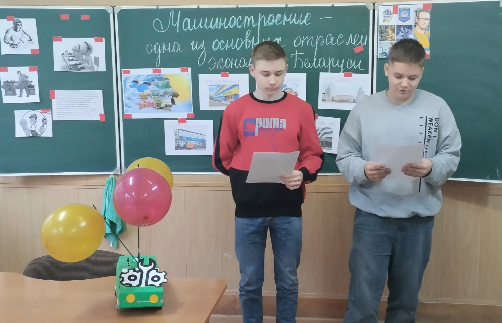 Так в группе 272 прошла деловая игра «Машиностроение - одна из основных отраслей экономики Республики Беларусь». Ребята рассказали о ведущих предприятиях машиностроительной отрасли, провели викторину, окунулись в историю машиностроения.