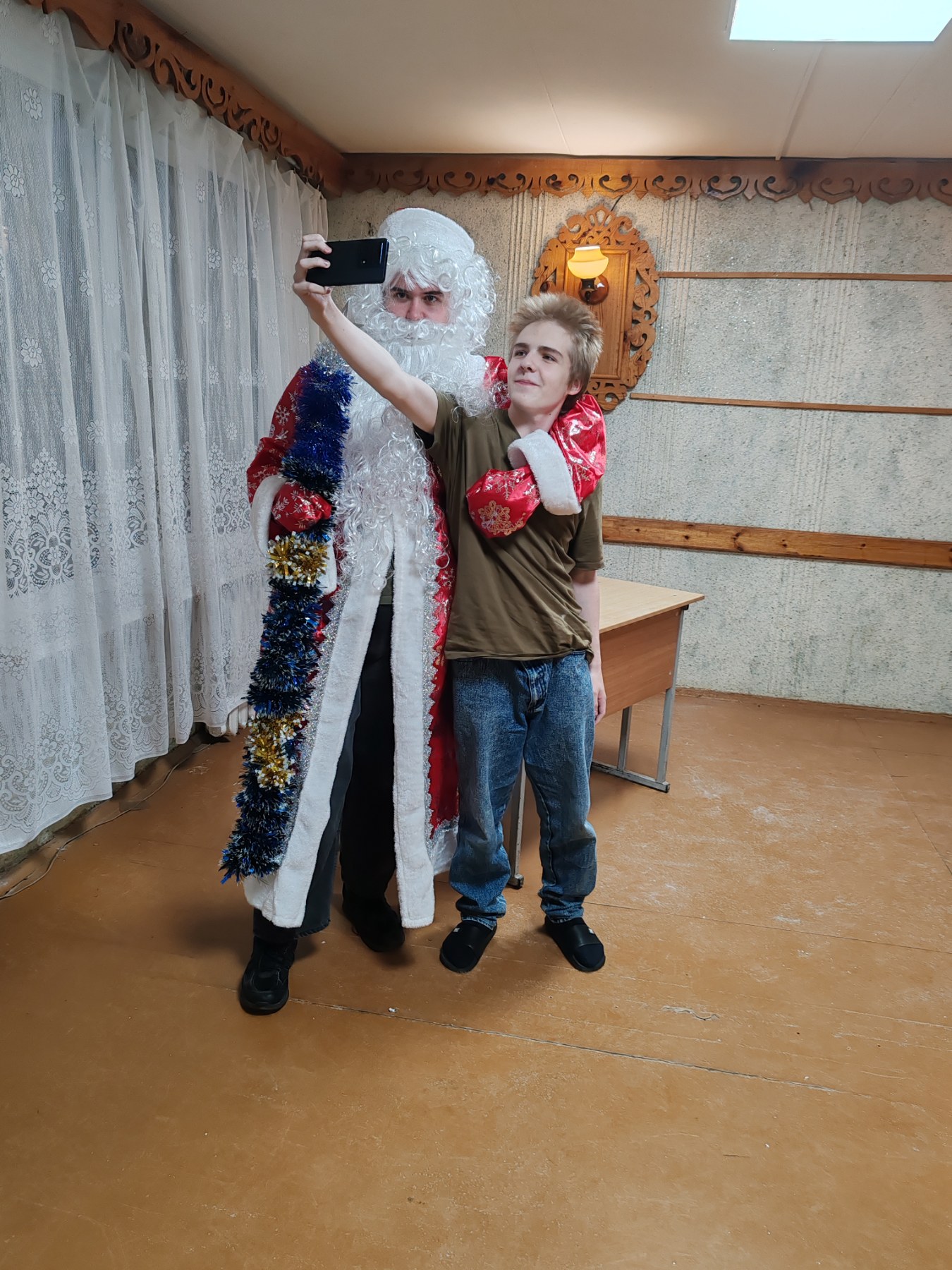 На мероприятие к учащимся первого курса, проживающим в общежитии, приходил Дед Мороз. Он поздравил всех ребят с наступающим праздником и подарил конфеты с предсказаниями. Дед Мороз предложил ребятам поучаствовать в акции "Мат - не наш формат!".